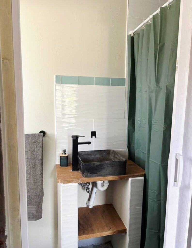 Open space living area with fully equipped kitchen. Two bedrooms with en-suite bathrooms consisting of a queen size bed and two single beds in the other.